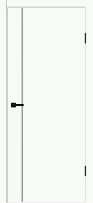 Межкомнатная дверь TECHNO BLACK FM1 Белый опал EMALUX с чёрной алюминиевой кромкой со всех четырёх сторон и молдингом чёрного цвета из коллекции TECHNO, производства Петербургской фабрики дверей Velldoris (Веллдорис).